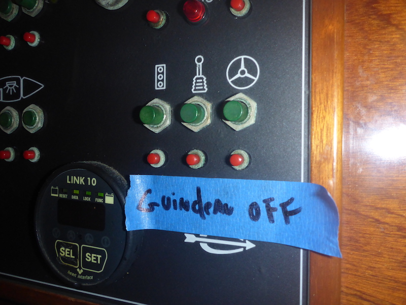 Since I rarely switch off the Windlass (Guindeau) breaker, I put a reminder on the 24 Volt panel